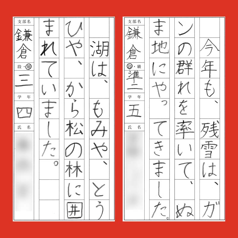 生徒さんレッスンの成果 競書に写真掲載された、小学2年生の毛筆作品|競書誌「書道活法會」2026年2月号