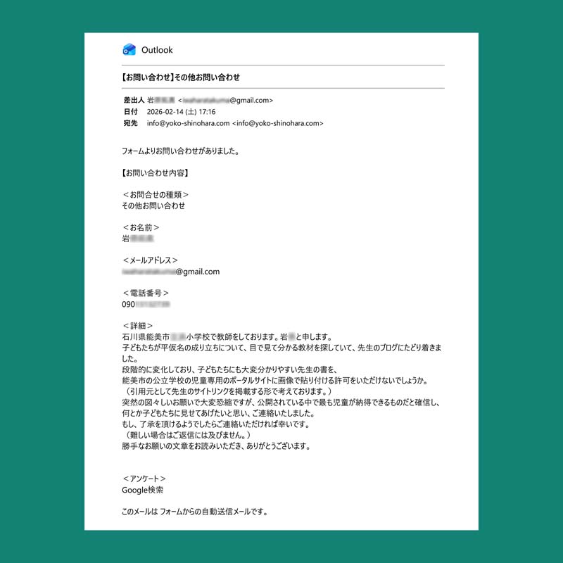 メール:info@yoko-shinohara.com