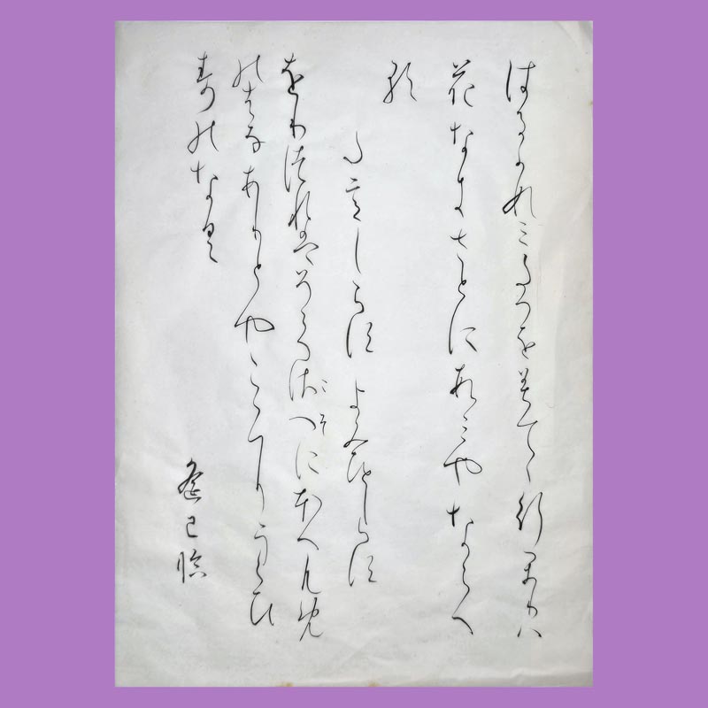 作風としてはスタンダードな字体で、特に草書体と平仮名全般を得意としています。