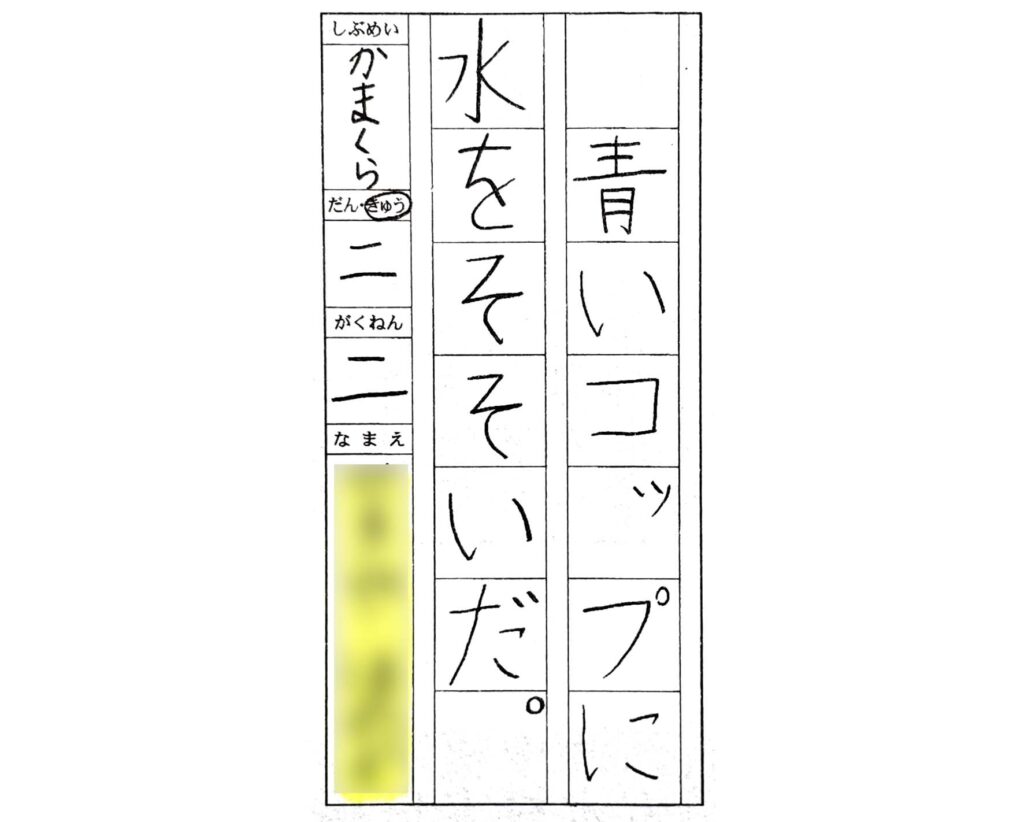 お手本をしっかり観察しながら書いていて、失敗してしまった時も「ここが変になっちゃった」と、