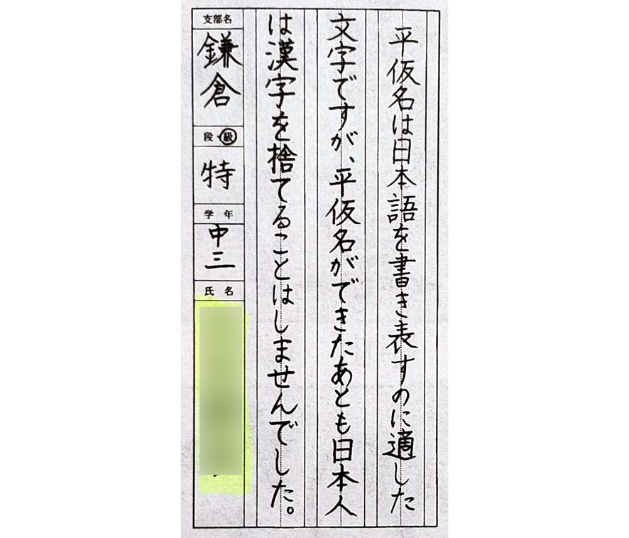 競書2020年11月号に掲載された、学生部の生徒さんの硬筆作品をご紹介します。