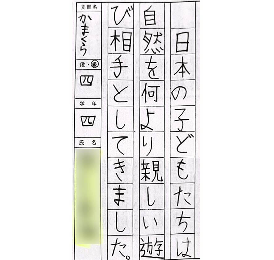 小学四年生の硬筆作品が第一位となり、写真掲載されていました。