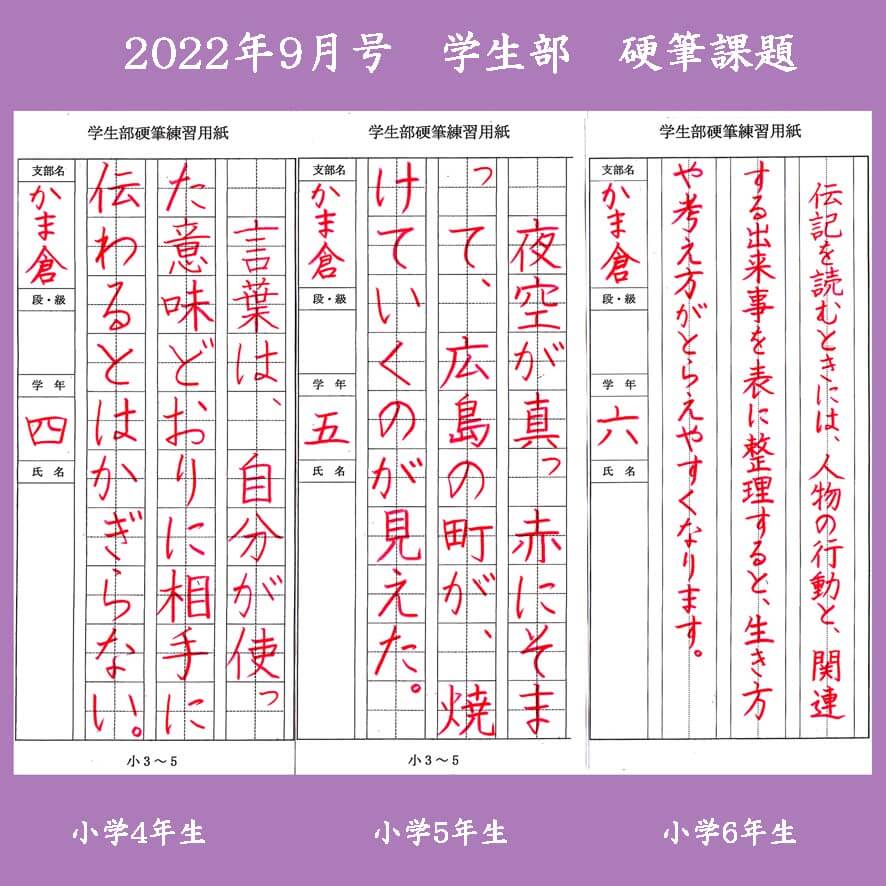 小学4年生から6年生までの硬筆お手本|競書2022年9月号