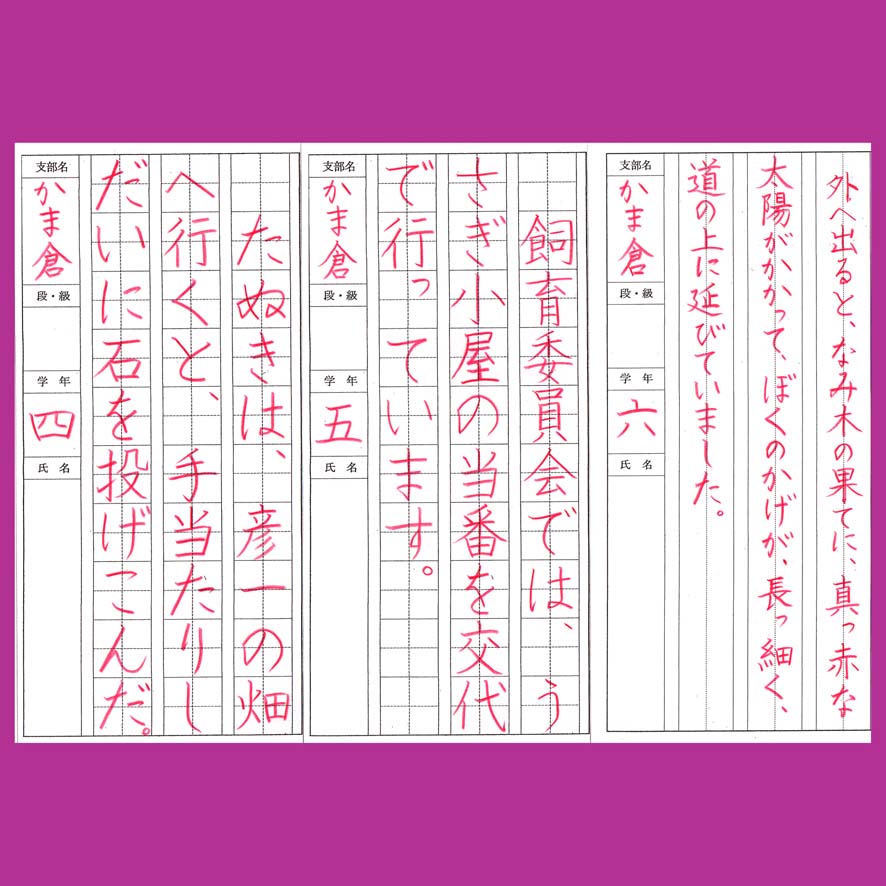 毛筆だけのお子さん、硬筆だけのお子さん、そして両方に取り組んでいるお子さんと三者三様です。