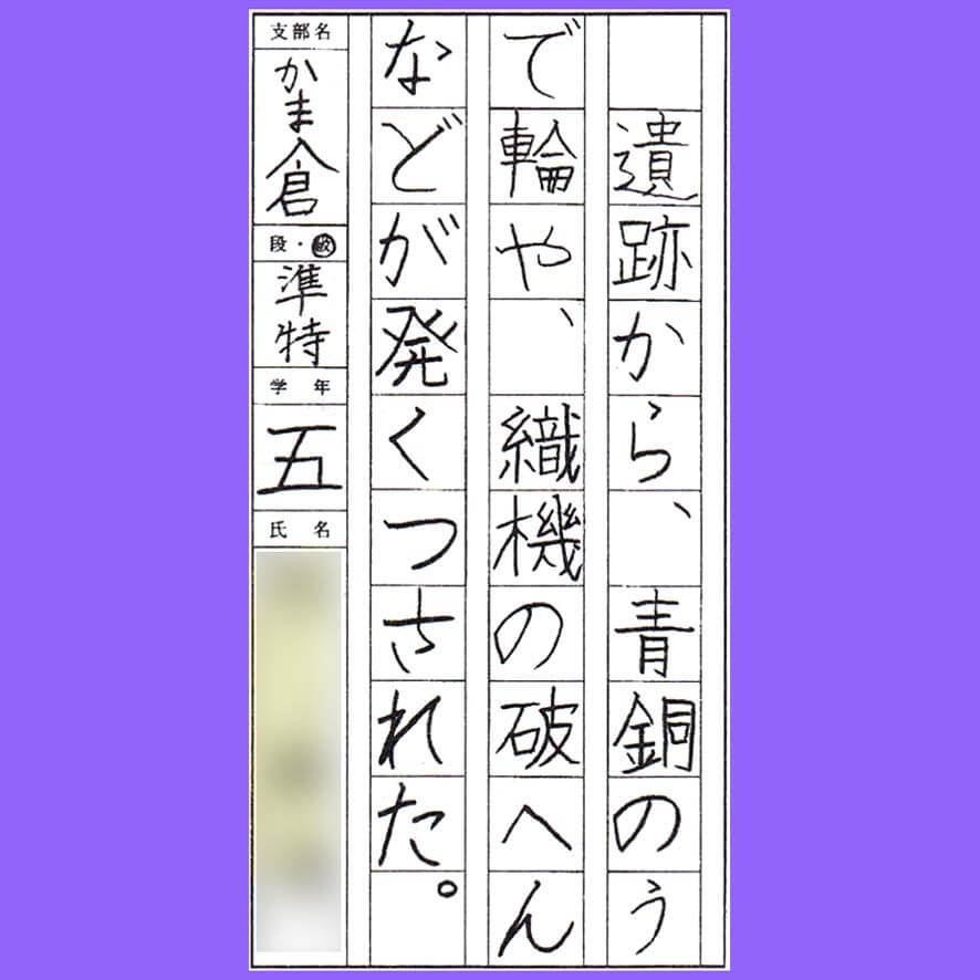 競書に写真掲載された、小学5年生の硬筆作品|2023年5月号