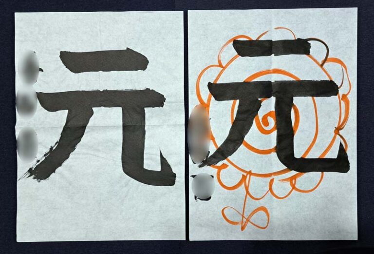 定期レッスンで平仮名の基礎に取り組んでいる生徒さんのビフォーアフター。