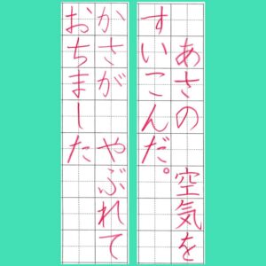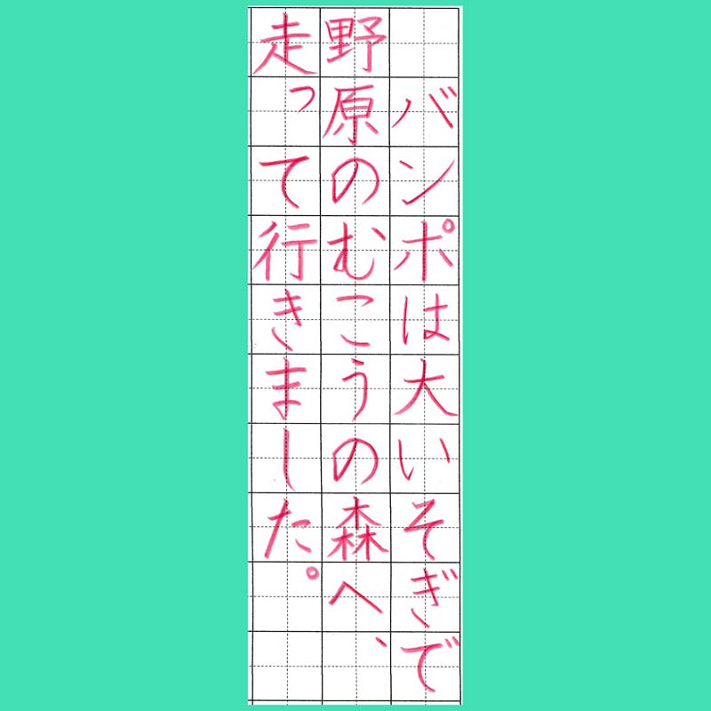 小学2年生以下はマス目がもっと大きく、小学6年生以上になるとマス目ではなく、中心線のみがある行に書いていきます。