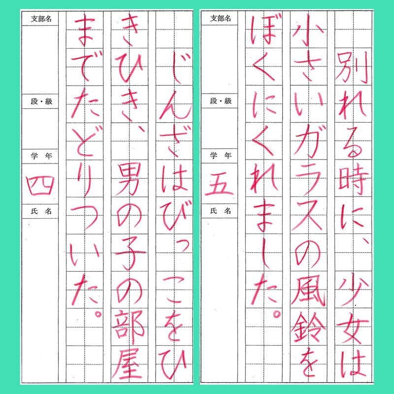毛筆だけのお子さん、硬筆だけのお子さん、そして両方に取り組んでいるお子さんと三者三様です。