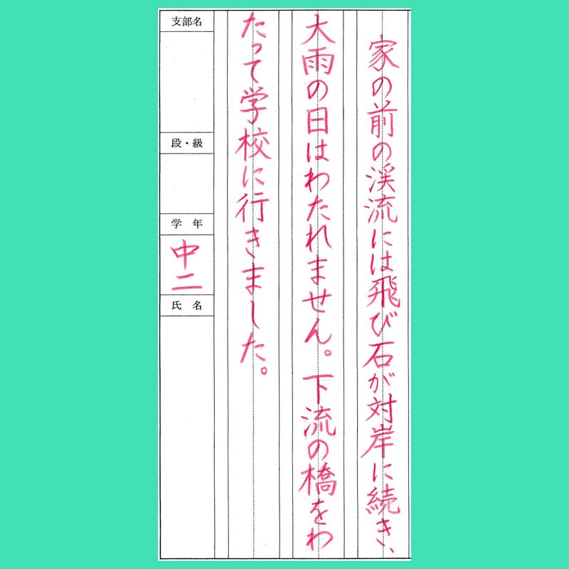 清書用紙に各マス目の中心線(点線)はありませんので、練習でマス目の真ん中に文字を書けるようにしていきましょう。