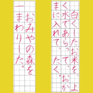 小学2年生以下はマス目がもっと大きく、小学6年生以上になるとマス目ではなく、中心線のみがある行に書いていきます。