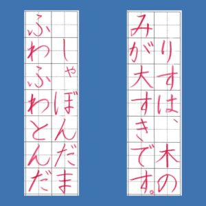 学生部に行書課題はないのですが、大人の生徒さんでペン字に取り組んでいる方達の教材にしています。