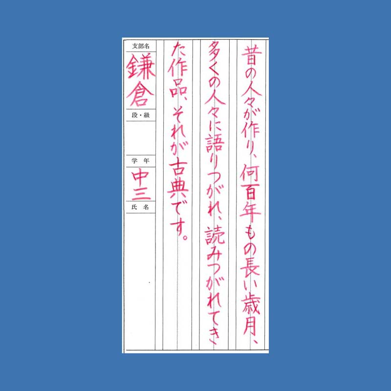 鎌倉市長谷にて書道教室を開講しており、人前で自信を持って字を書ける、美文字のコツをお伝えしています。出張レッスン、美文字講座など外部書道講師としてのご依頼も大歓迎です。また、招待状宛名書きなどの筆耕、謝辞・祝辞・入学願書等の代筆、書作品のご依頼も承ります。