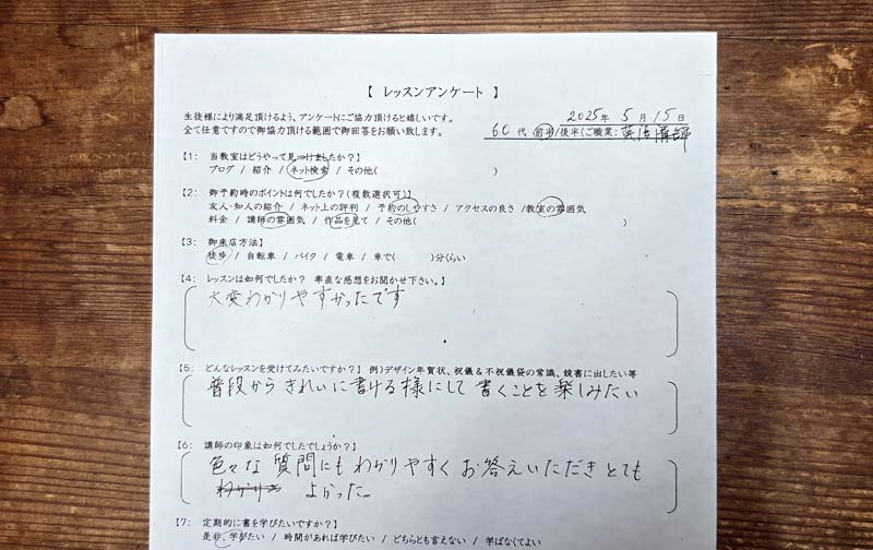 硬筆の体験レッスンにお越しくださった方のご感想をご紹介します。