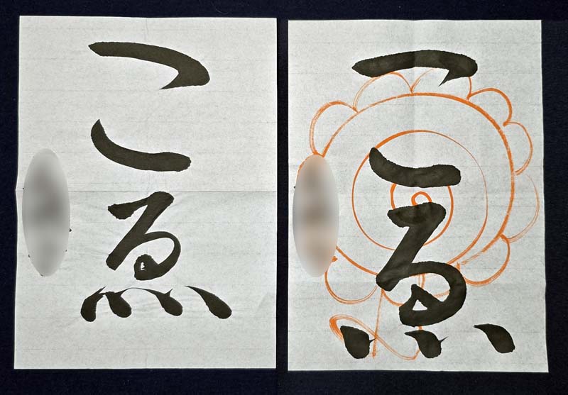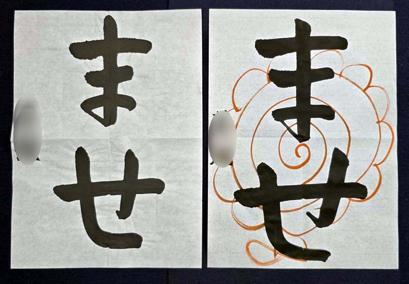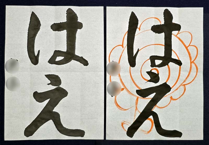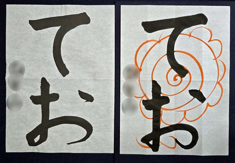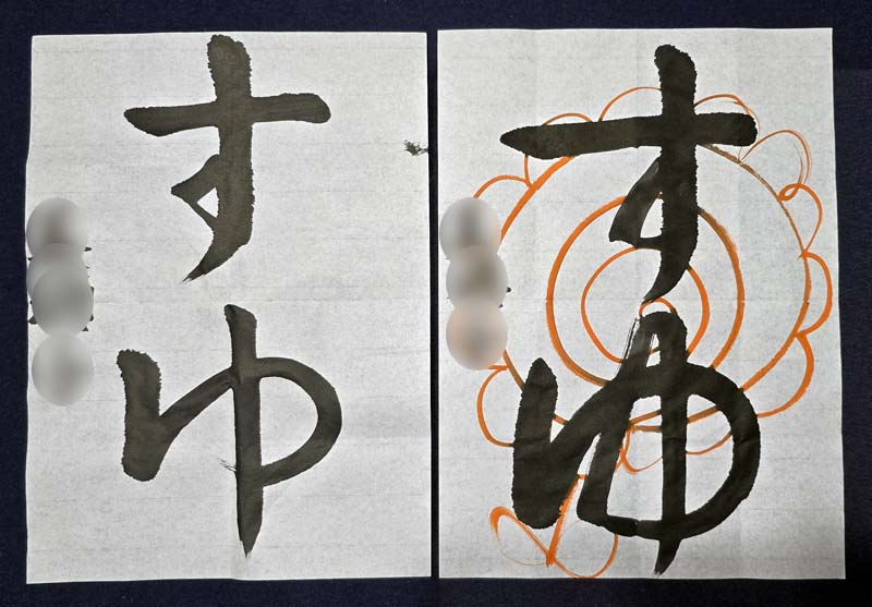 定期レッスンで平仮名の基礎に取り組んでいる生徒さんのビフォーアフター。