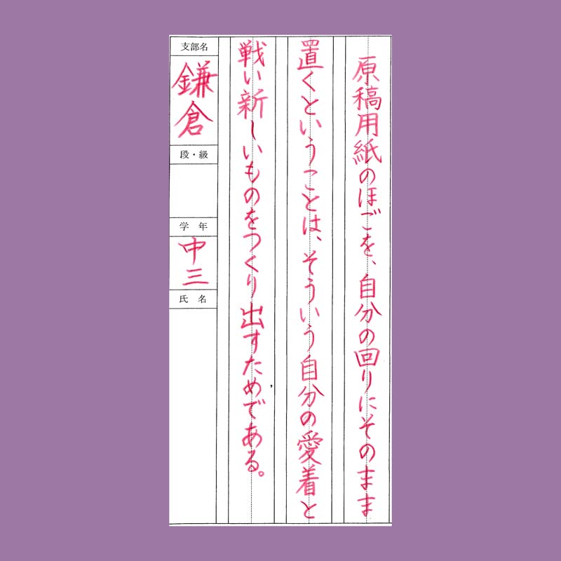 書道活法會(競書)学生部の硬筆お手本