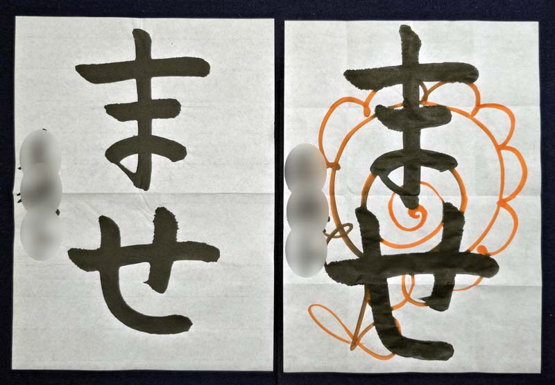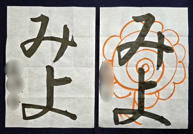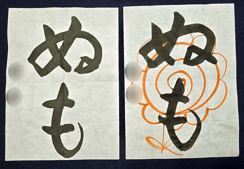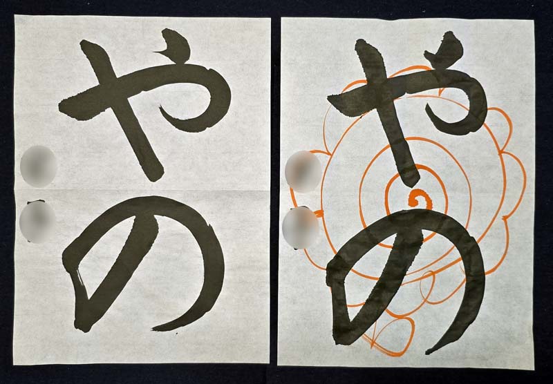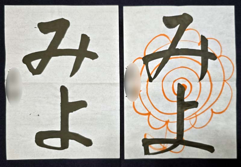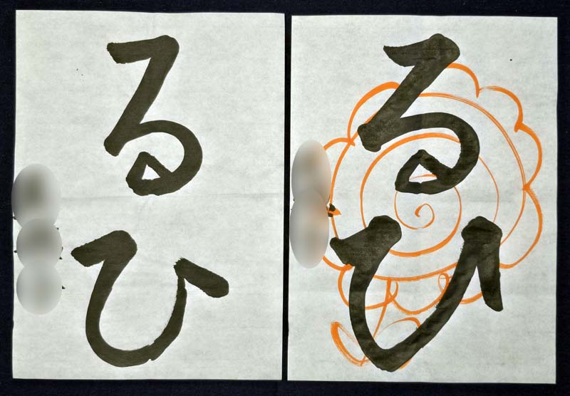 定期レッスンで平仮名の基礎に取り組んでいる生徒さんのビフォーアフター。