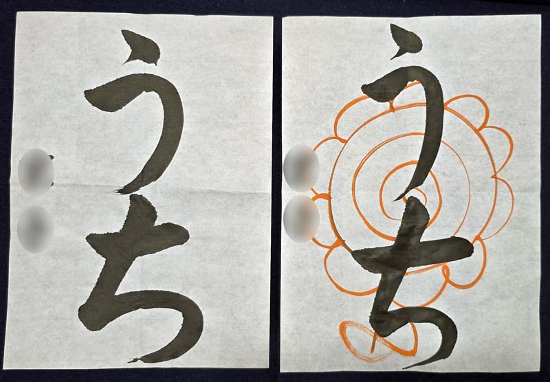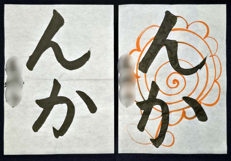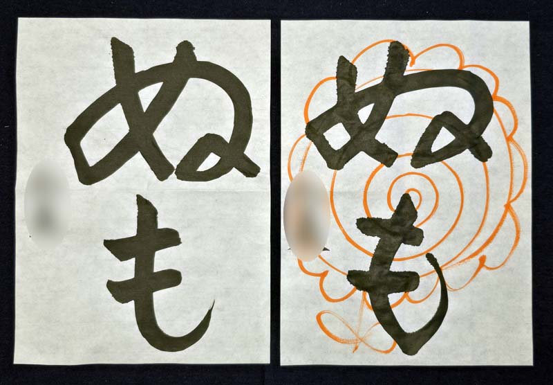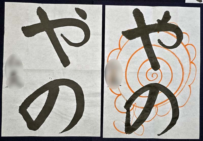 定期レッスンで平仮名の基礎に取り組んでいる生徒さんのビフォーアフター。