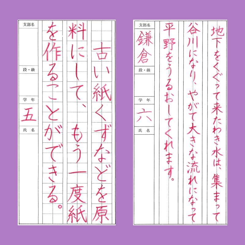書道活法會(競書)学生部の硬筆お手本