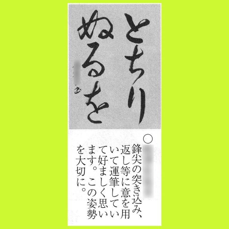 生徒さんの半紙かな作品が写真掲載されました。 収筆から次の線の始筆への繋がりを意識して書くことができ […] -