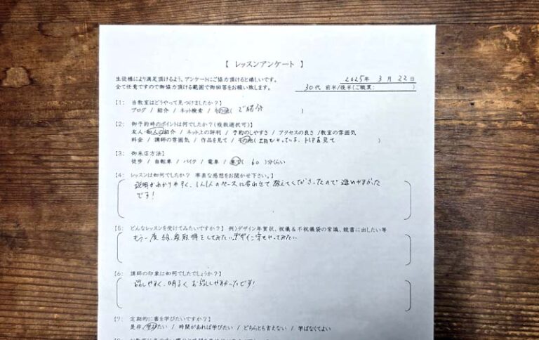 レッスンのご感想 上手に導いていただきました|中筆体験レッスンご感想