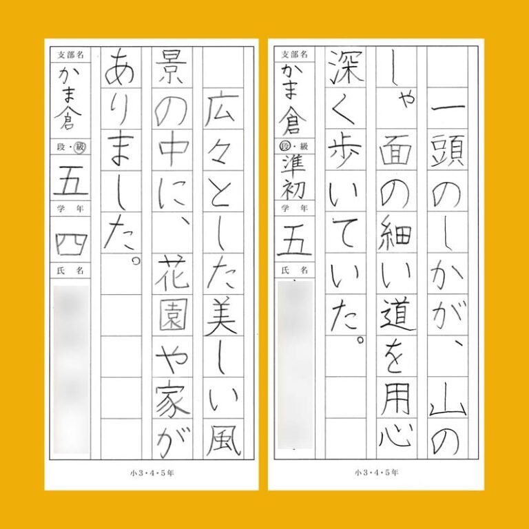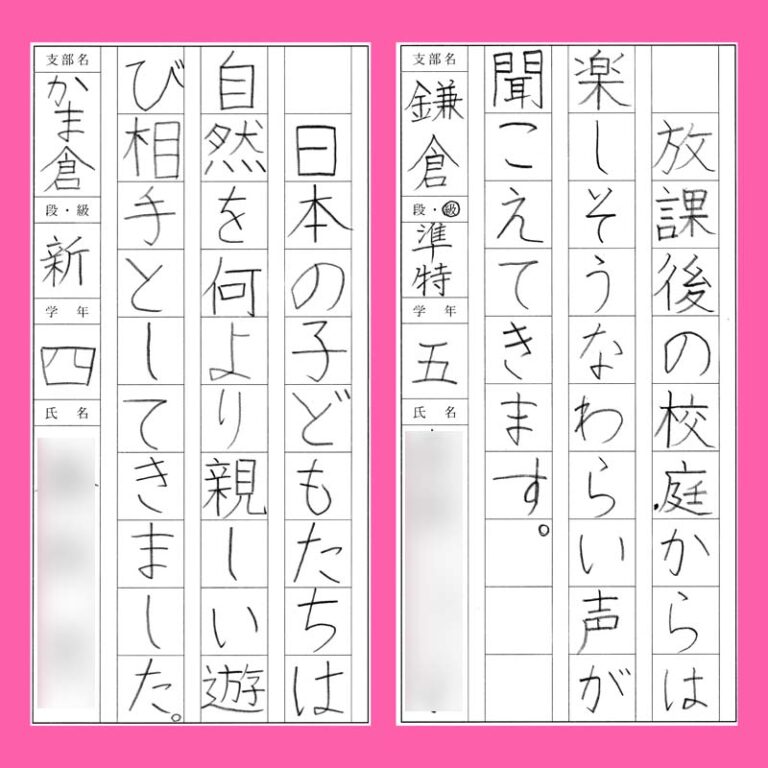 生徒さんレッスンの成果 競書に写真掲載された、小学4年生の硬筆作品|競書誌「書道活法會」2025年11月…
