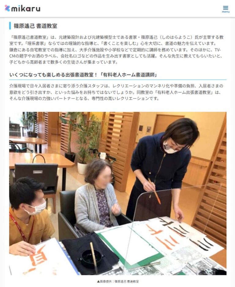 お知らせ レバレジーズ株式会社が運営するmikaruにて「有料老人ホーム書道講師」について…