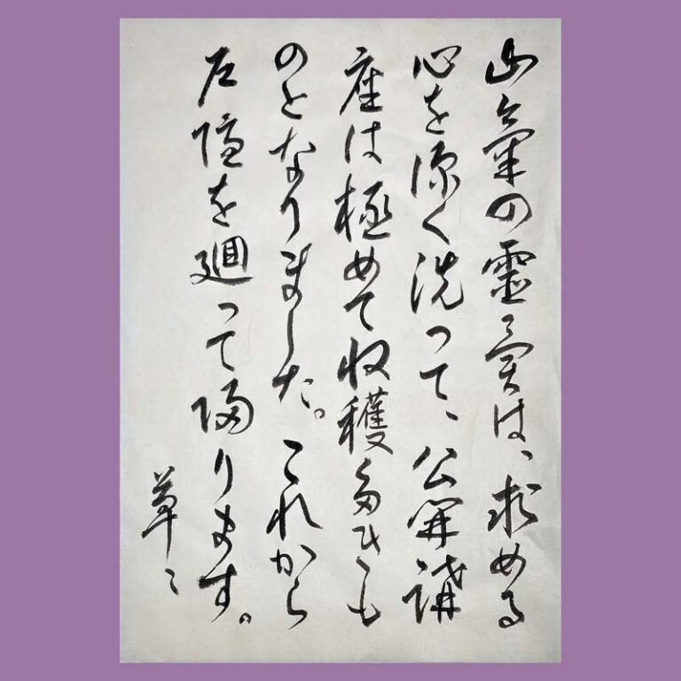 書作品 半紙1/2書簡文の参考作品|競書誌「書道活法會」2025年11月号の課題