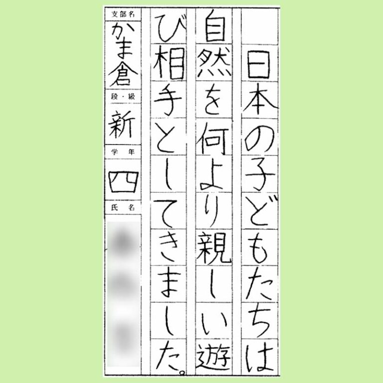 生徒さんレッスンの成果 競書に写真掲載された、小学2年生の毛筆作品|競書誌「書道活法會」2025年12月…