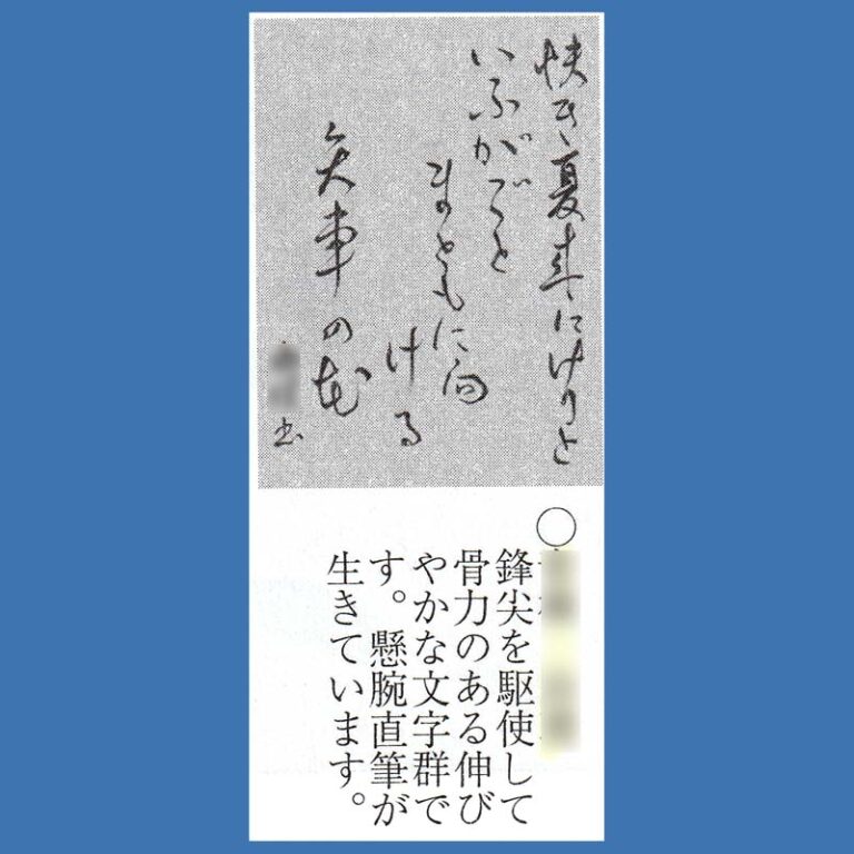 準師範の生徒さんの仮名作品が写真掲載されました。 第一席、おめでとうございました。 「懸腕直筆(けん […] -